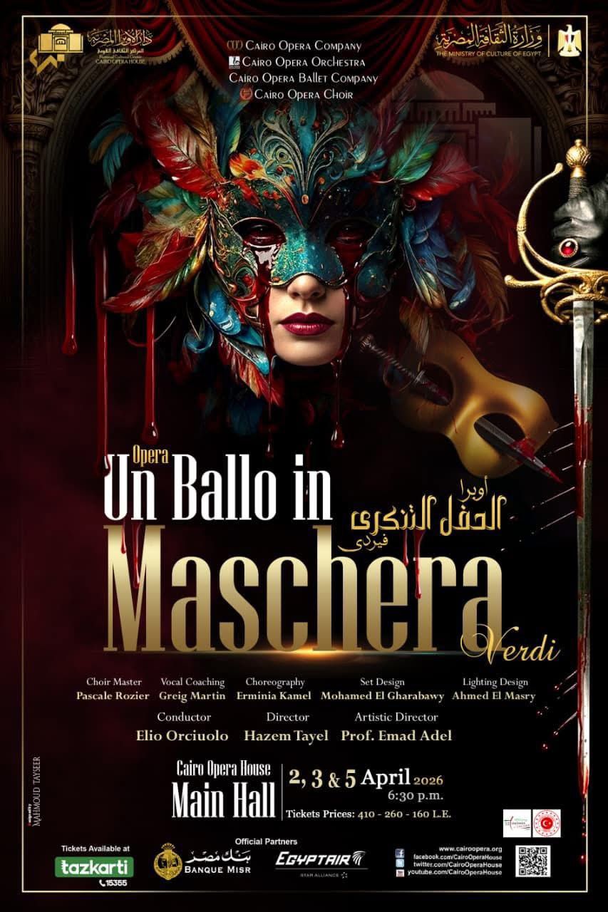 تستعد دار الأوبرا المصرية لإحياء واحدة من روائع المؤلف الموسيقى العالمي جوزيبي فيردي، أوبرا الحفل التنكرى، في عرض خاص على المسرح الكبير لثلاث ليالٍ متتالية، أيام الخميس والجمعة والأحد 2 و3 و5 أبريل، في تمام الساعة السادسة والنصف مساءً.