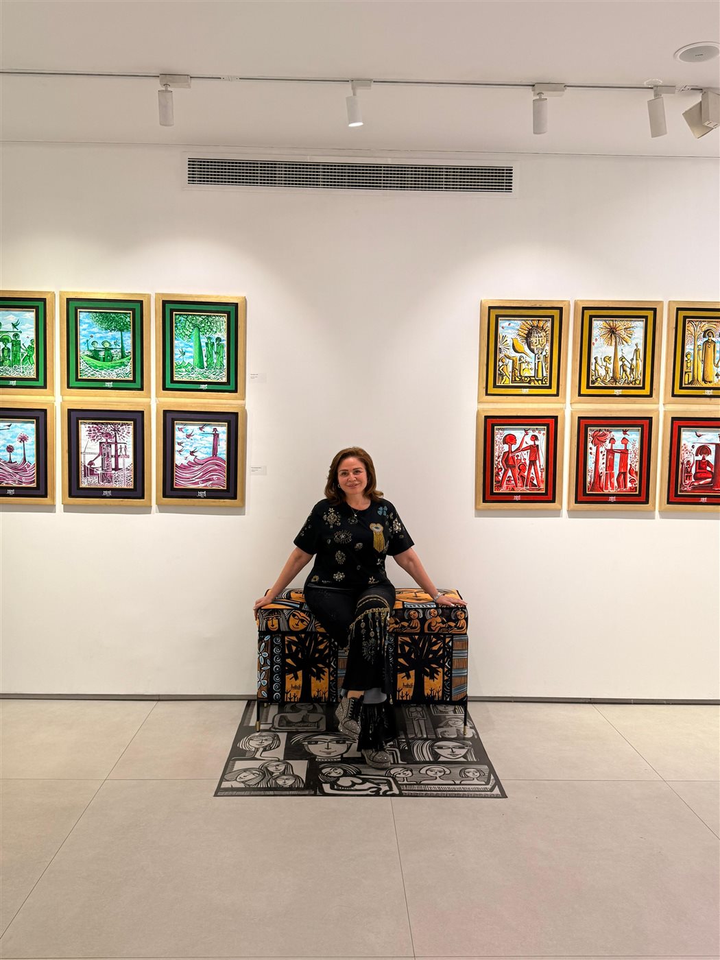 خلال الزيارة، ظهرت إلهام شاهين بإطلالة أنيقة باللون الأسود، متناسقة مع أجواء المعرض، حيث تفاعلت مع الأعمال الفنية والتقطت الصور التذكارية داخل القاعة، ما أثار اهتمام الحضور والمصورين.