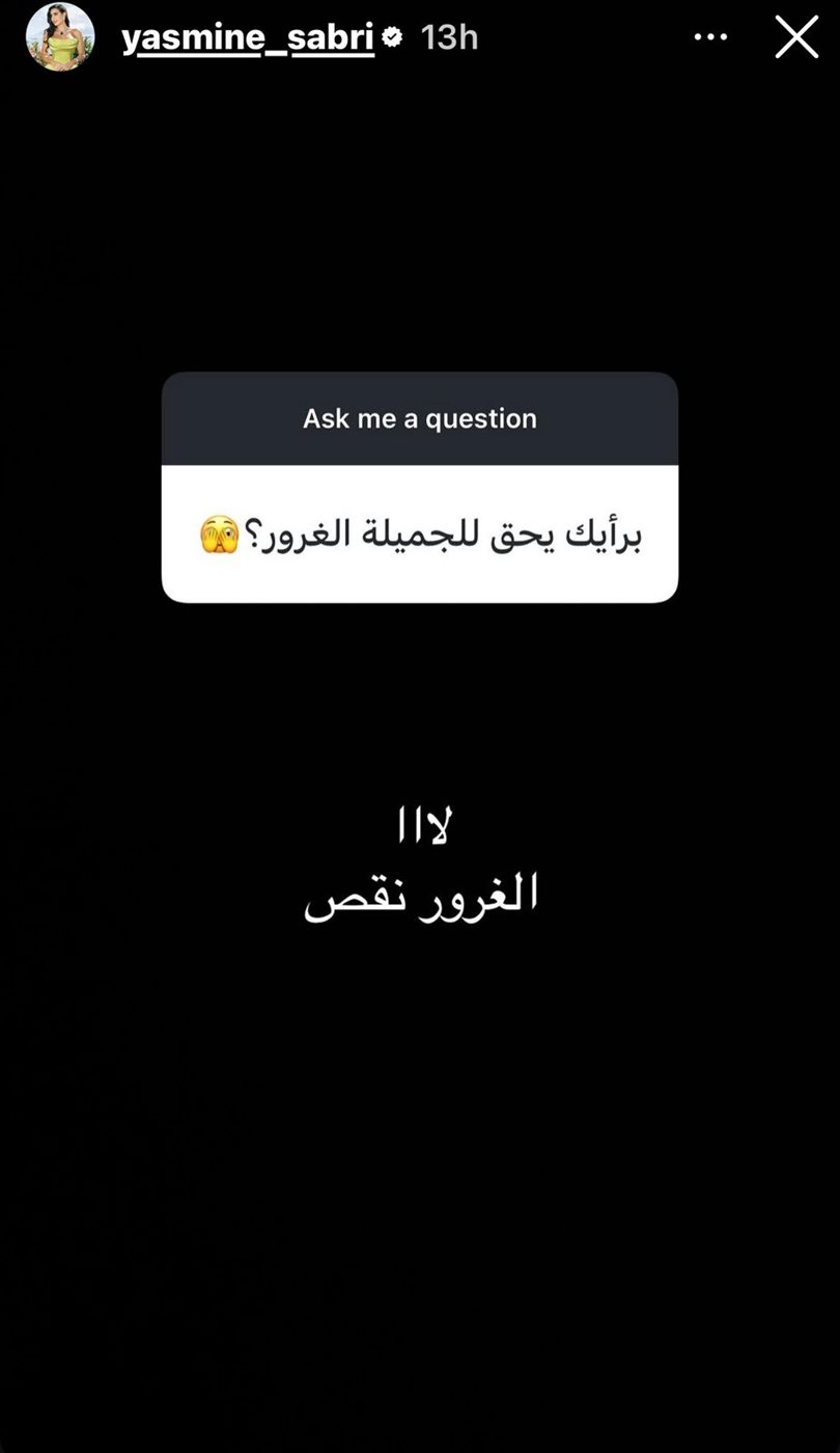 أما عن سؤال أحد المتابعين: "برأيك يحق للجميلة الغرور؟"، فقد جاء ردها حاسمًا، حيث أكدت رفضها للغرور بقولها: "لا الغرور نقص"، في رسالة واضحة تعكس وجهة نظرها تجاه الثقة بالنفس وحدودها.