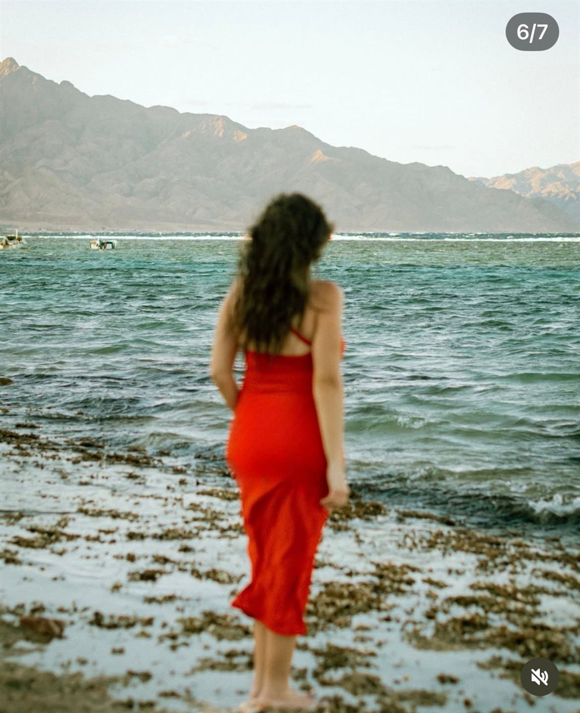وظهرت وئام مجدي خلال جلسة التصوير بإطلالة مميزة، حيثُ اعتمدت فستانًا بتصميم مستقيم وطويل باللون الأحمر، عكس جمال أجواء البحر والطبيعة الخلابة في دهب، مما أضفى على الصور طابعًا رومانسيًا وجذابًا.