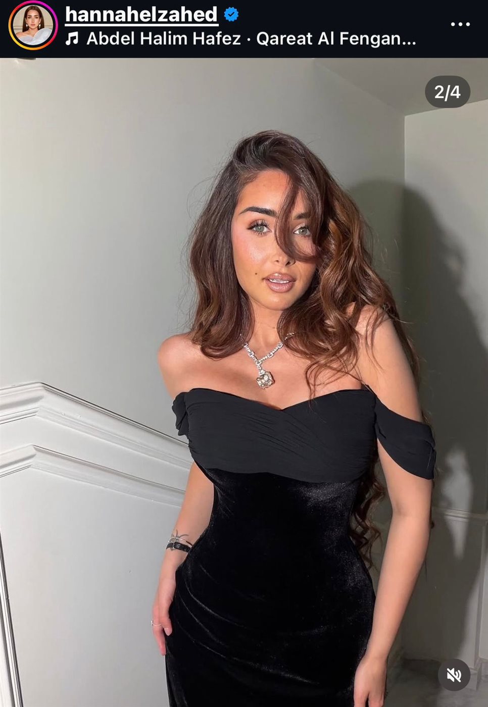 وظهرت هنا الزاهد في الصور مرتدية فستانًا من القطيفة الأسود بتصميم مستقيم أبرز رشاقتها، مع كاب طويل من الشفون الأسود، كما جاء الفستان بقصة صدر بتصميم "أوف شولدرمما أضفى لمسة من الرقي والجاذبية على إطلالتها.