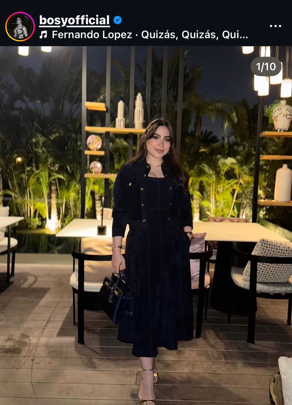 واعتمدت بوسي فستانًا باللون الأسود بتصميم A-line، ونسقت معه جاكيت قصير بنفس اللون مزين بأزرار ذهبية، ما أضفى لمسة راقية على مظهرها.