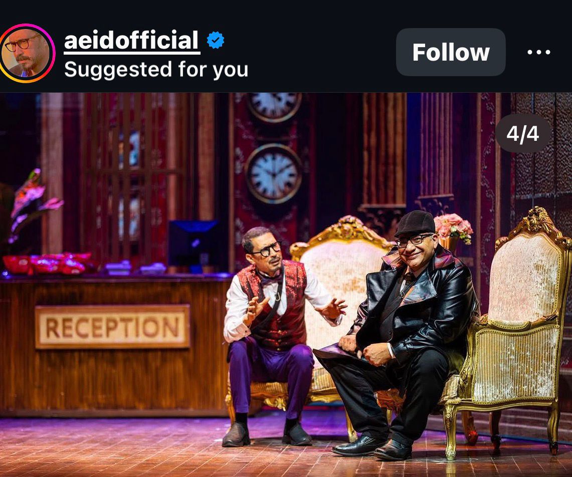 وثّق الفنان أحمد عيد لحظات مميزة من رحلته المسرحية في المملكة العربية السعودية، حيث شارك جمهوره عبر حساباته الرسمية بمجموعة من الصور من كواليس وعرض مسرحيته الجديدة “جريمة في فندق السعادة”.