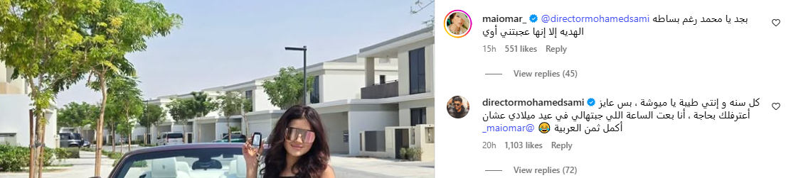 أثارت الفنانة مي عمر تفاعلًا واسعًا على مواقع التواصل بعد تعليقها الطريف على صورة نشرتها عبر حسابها على “إنستجرام”، ظهرت فيها بجانب سيارتها الجديدة.