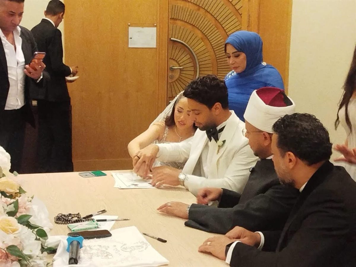 الصور الأولى لعقد قران أحمد جمال وفرح الموجي