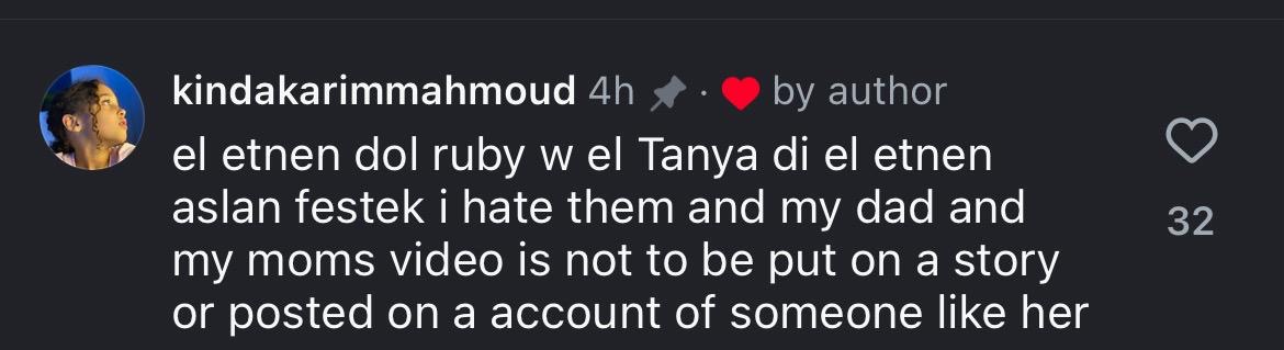 قالت كندة في تعليقها الذي انتشر على نطاق واسع: “الاتنين دول روبي والتانية دي، الاتنين أصلًا فستك، أنا بكرهم، فيديو بابا وماما ليس للوضع استوري أو يتحط كبوست في أكونت واحدة زيها”، في إشارة واضحة إلى رفضها لما اعتبرته تجاوزًا من الفنانتين في محتوى الفيديو.