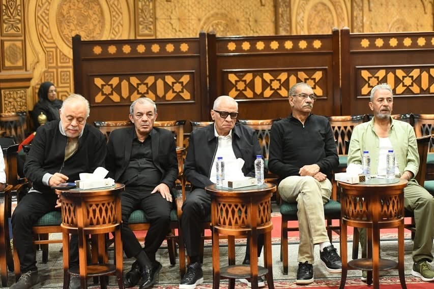 محمد هنيدي وحسن الرداد والسبكي وسيد رجب في عزاء أحمد عبد الله
