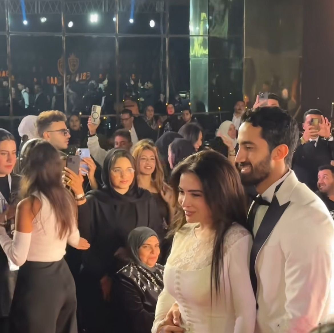 مي عز الدين بإطلالة بيضاء برفقة أحمد تيمور في أول ظهور بعد زواجهما