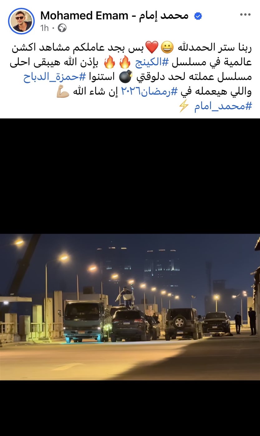 «ربنا ستر الحمد لله.. بس بجد عاملكم مشاهد أكشن عالمية في مسلسل الكينج، بإذن الله هيبقى أحلى مسلسل عملته لحد دلوقتي، استنوا حمزة الدباح واللي هيعمله في رمضان 2026 إن شاء الله».