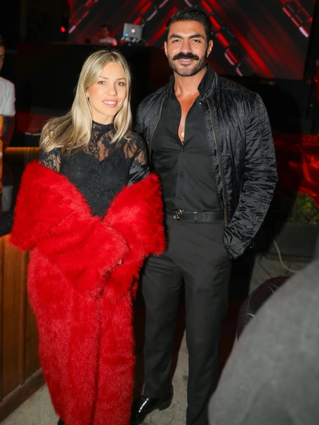 خالد سليم ظهر بإطلالة كلاسيكية عصرية باللون الأسود، عكست حضوره اللافت وثقته المعتادة، بينما تألقت زوجته بإطلالة جذابة جمعت بين الأناقة والجرأة، خطفت بها الأنظار وأضفت لمسة دافئة على أجواء السهرة.