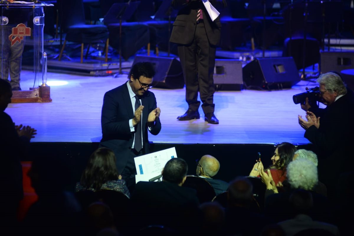 شهدت المنصة تكريم ثلاثة من أعمدة الفكر والإبداع في مصر، والذين حصدوا أرفع جائزة تمنحها الدولة المصرية: