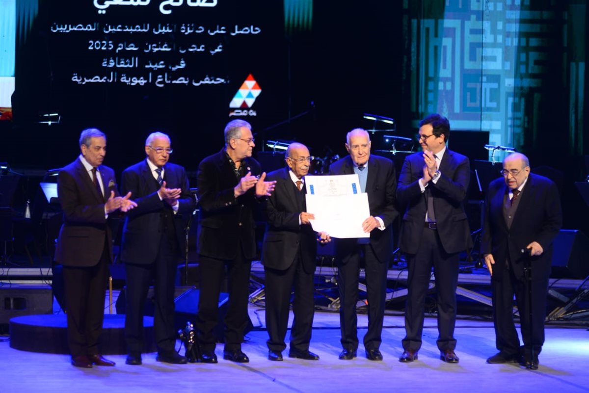 لم تخلُ الاحتفالية من اللمسة القومية، إذ خصصت وزارة الثقافة تكريم استثنائي للفنان التشكيلي الفلسطيني الكبير سليمان منصور، بمنحه جائزة النيل للمبدعين العرب.