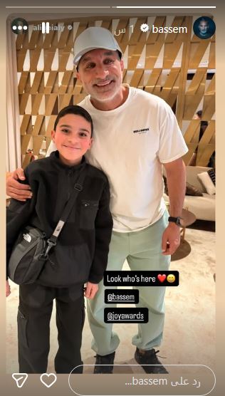 كما ظهر في صورة أخرى باسم يوسف رفقة الطفل علي البيلي، الذي تألق في مسلسل “لام شمسية” بطولة أمينة خليل وأحمد السعدني.