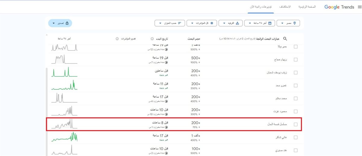 تصدر مسلسل قسمة العدل للنجمة إيمان العاصي محركات البحث بعد عرض الحلقة الـ14 التي شهدت تطورات درامية مشوقة، أبرزها حبس شخصية مريم (إيمان العاصي) بعد اعتدائها على هالة (دعاء حكم) زوجة طليقها (محمد جمعة)، وخضوعها لاحقًا لابتزاز هالة والاعتذار لها علنًا في مشهد مؤثر أظهر انكسار مريم.