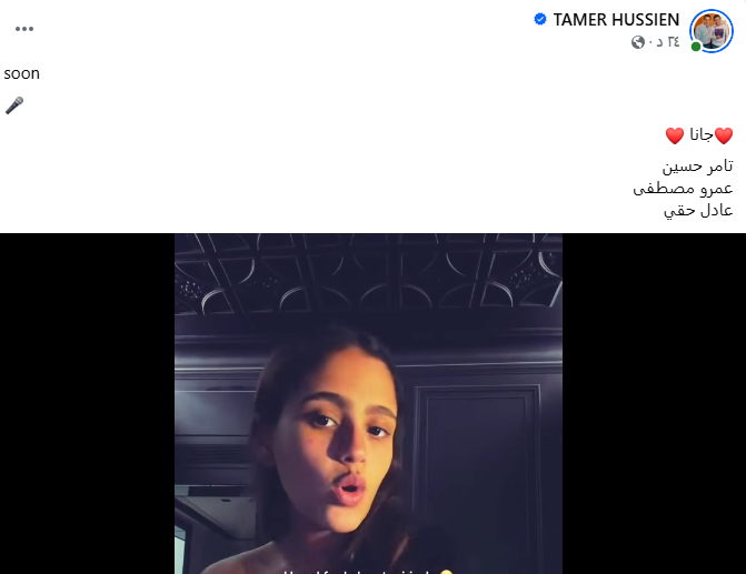 أعلن الشاعر تامر حسين عن تعاون جديد يجمعه مع جانا عمرو دياب في أغنية مرتقبة، بعد النجاح اللافت الذي حققته الأخيرة في أغنية "خطفوني" التي قدمتها رفقة والدها عمرو دياب وحققت انتشارًا واسعًا بين الجمهور.