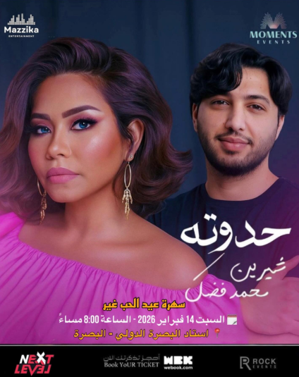 تستعد الفنانة شيرين عبدالوهاب للعودة إلى جمهورها من خلال حفل غنائي مميز يحييه مع المطرب محمد فضل شاكر يوم 14 فبراير، تزامنًا مع عيد الحب، على مسرح استاد البصرة الدولي بالعراق في تمام الساعة الثامنة مساءً.