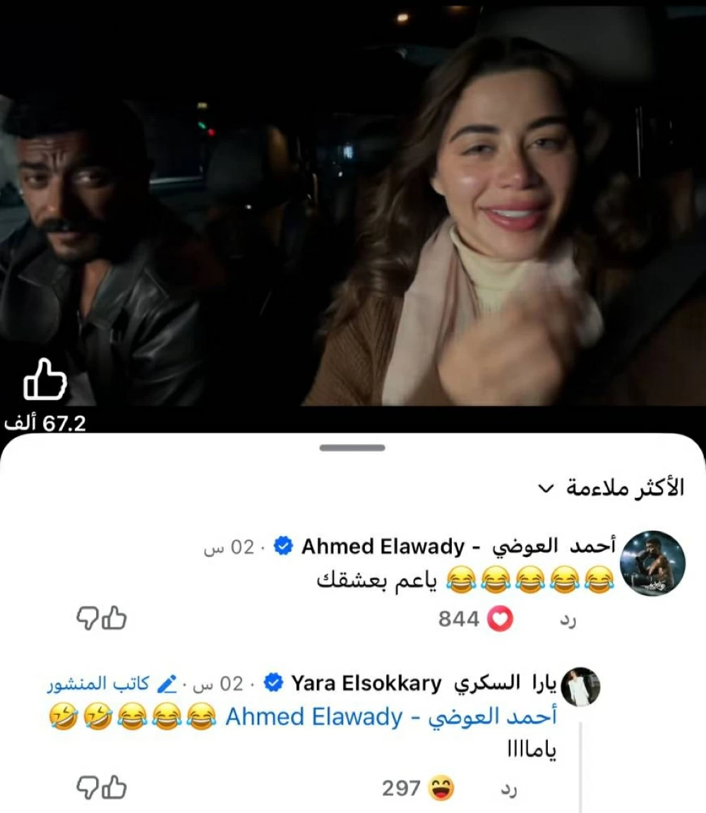 وشاركت يارا السكري الفيديو عبر حسابها الرسمي على موقع التواصل الاجتماعي "فيسبوك"، ليتفاعل أحمد العوضي مع الفيديو معلقًا: "يا عم بعشقك"، بينما ردت عليه يارا السكري مازحة: "ياماااا".