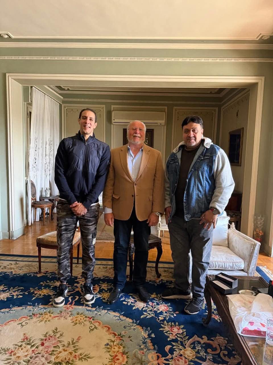 محمد شبانة وحفيد شقيقة عبد الحليم في استقبال الملك أحمد فؤاد الثاني