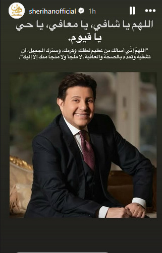 وعبّرت شريهان عن دعمها من خلال خاصية «الاستوري» على حسابها الرسمي بموقع إنستجرام، حيث نشرت صورة للفنان ورفقتها بدعاء مؤثر، تمنت فيه له الشفاء العاجل واستعادة صحته، في لفتة إنسانية لاقت تفاعلًا كبيرًا من الجمهور.