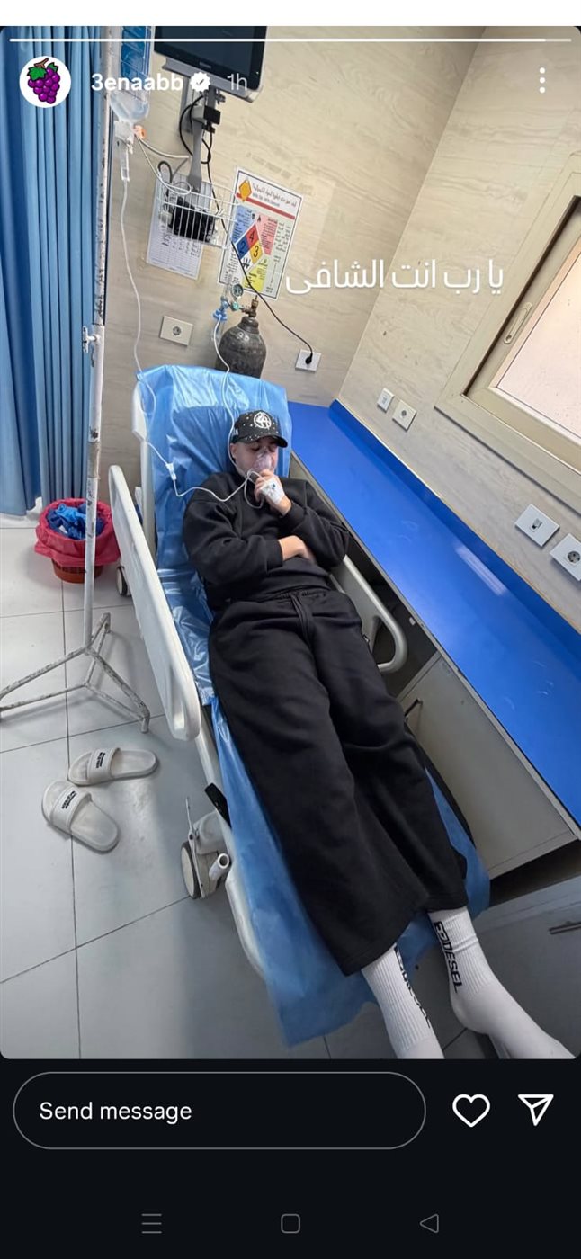 وشارك عنبة جمهوره بصورة عبر خاصية «ستوري» على حسابه الرسمي بموقع إنستجرام، ظهر خلالها على سرير العلاج، في إشارة واضحة إلى مروره بوعكة صحية استدعت التدخل الطبي، وعلق على الصورة بكلمات مؤثرة قال فيها: «يا رب أنت الشافي»، في رسالة حملت الكثير من القلق والأمل في التعافي السريع.