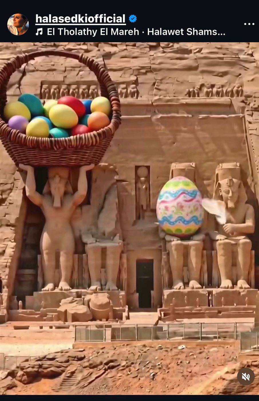 احتفلت الفنانة هالة صدقى بيوم شم النسيم بطريقتها الخاصة المبهجة حيثُ نشرت صورة طريفة لمعبد الكرنك على حسابها الرسمي بموقع التواصل الأجتماعي "إنسترام".