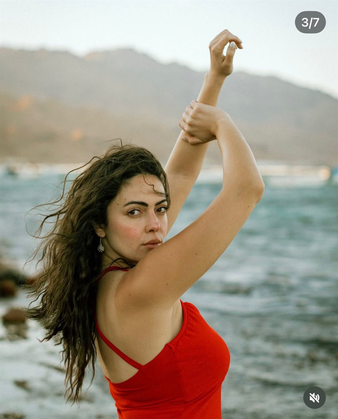 وظهرت وئام مجدي خلال جلسة التصوير بإطلالة مميزة، حيثُ اعتمدت فستانًا بتصميم مستقيم وطويل باللون الأحمر، عكس جمال أجواء البحر والطبيعة الخلابة في دهب، مما أضفى على الصور طابعًا رومانسيًا وجذابًا.