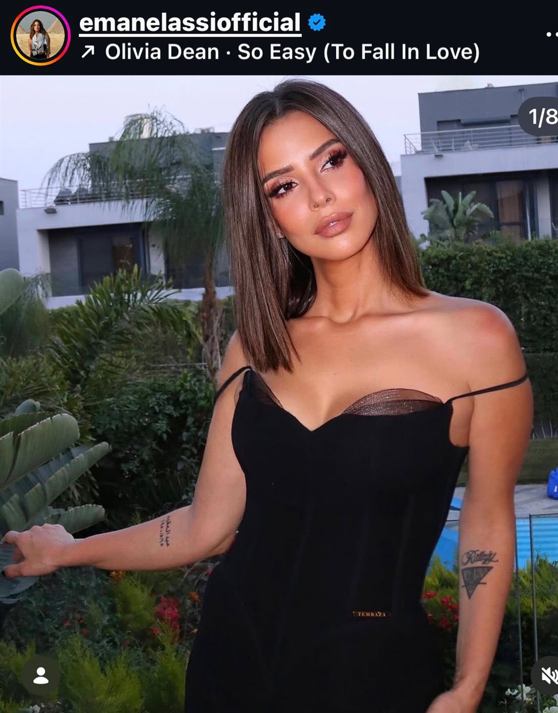 وظهرت إيمان العاصي في الصور بإطلالة جذابة وأنيقة، حيثُ ارتدت فستانًا باللون الأسود، جاء بتصميم مستقيم تميز بالبساطة والرقي، مع كب من التول الأسود أضفى لمسة من الأناقة على اللوك، وسط تفاعل واسع من متابعيها على السوشيال ميديا.