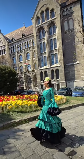 وظهرت مي عمر في الفيديو بإطلالة مستوحاة من الطابع الإسباني، إذ ارتدت فستانًا مستقيمًا مكشكشًا أبرز أناقتها، وسط أجواء تصوير العمل الذي يُجرى بين عدد من المواقع الأوروبية.