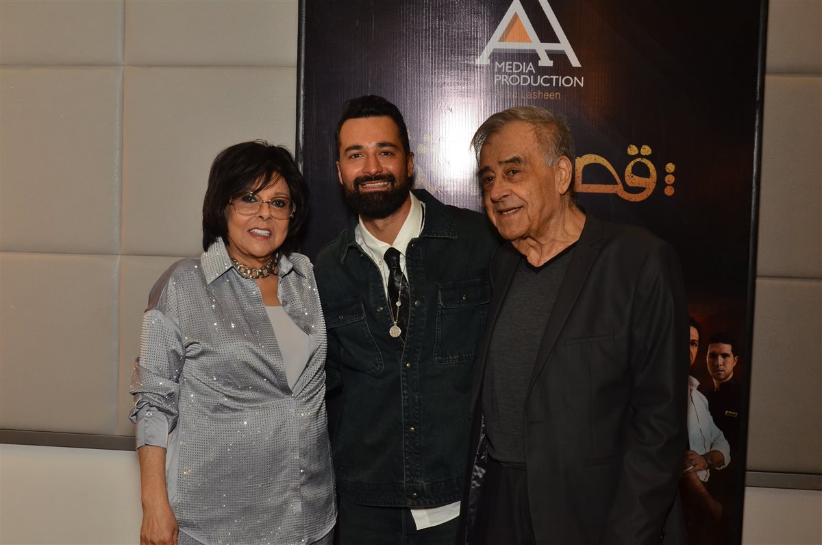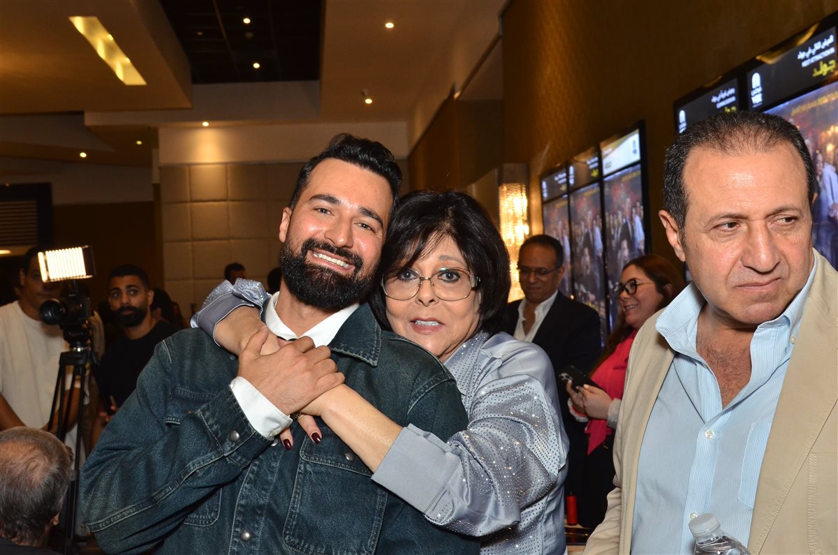 وخطف الانظار حضور الفنانة والمنتجة اسعاد يونس وحرصت علي تهنئة فريق العمل وتغيب الفنان الكبير حسين فهمي عن حضور العرض الخاص بسبب وفاة شقيقة زوجته صباح اليوم.