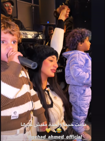 ونشرت جهاد أحمد، مقطع فيديو برفقة زوجها عصام صاصا، من أخر حفلاته بـ "صاصا كافية"، وعلقت عليه بجملة من أحدث مهرجاناته كاتبه: "ماما حيما واحدة ومفيش غيرها".