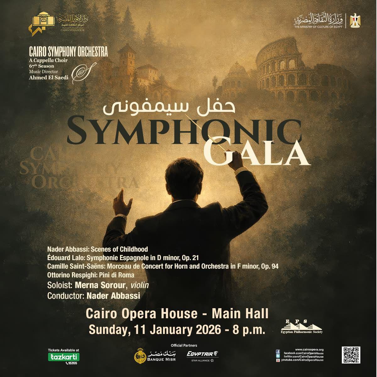 تواصل دار الأوبرا المصرية برئاسة الدكتور علاء عبد السلام رحلتها فى تقديم الفنون الموسيقية العالمية، من خلال حفل جديد لأوركسترا القاهرة السيمفونى، والمقرر إقامته بقيادة المايسترو نادر عباسى ومشاركة عازفة الفيولينة ميرنا سرور، وذلك فى الثامنة مساء يوم الأحد 11 يناير على المسرح الكبير.