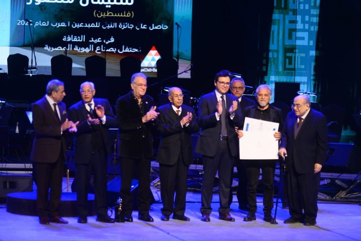 لم تخلُ الاحتفالية من اللمسة القومية، إذ خصصت وزارة الثقافة تكريم استثنائي للفنان التشكيلي الفلسطيني الكبير سليمان منصور، بمنحه جائزة النيل للمبدعين العرب.