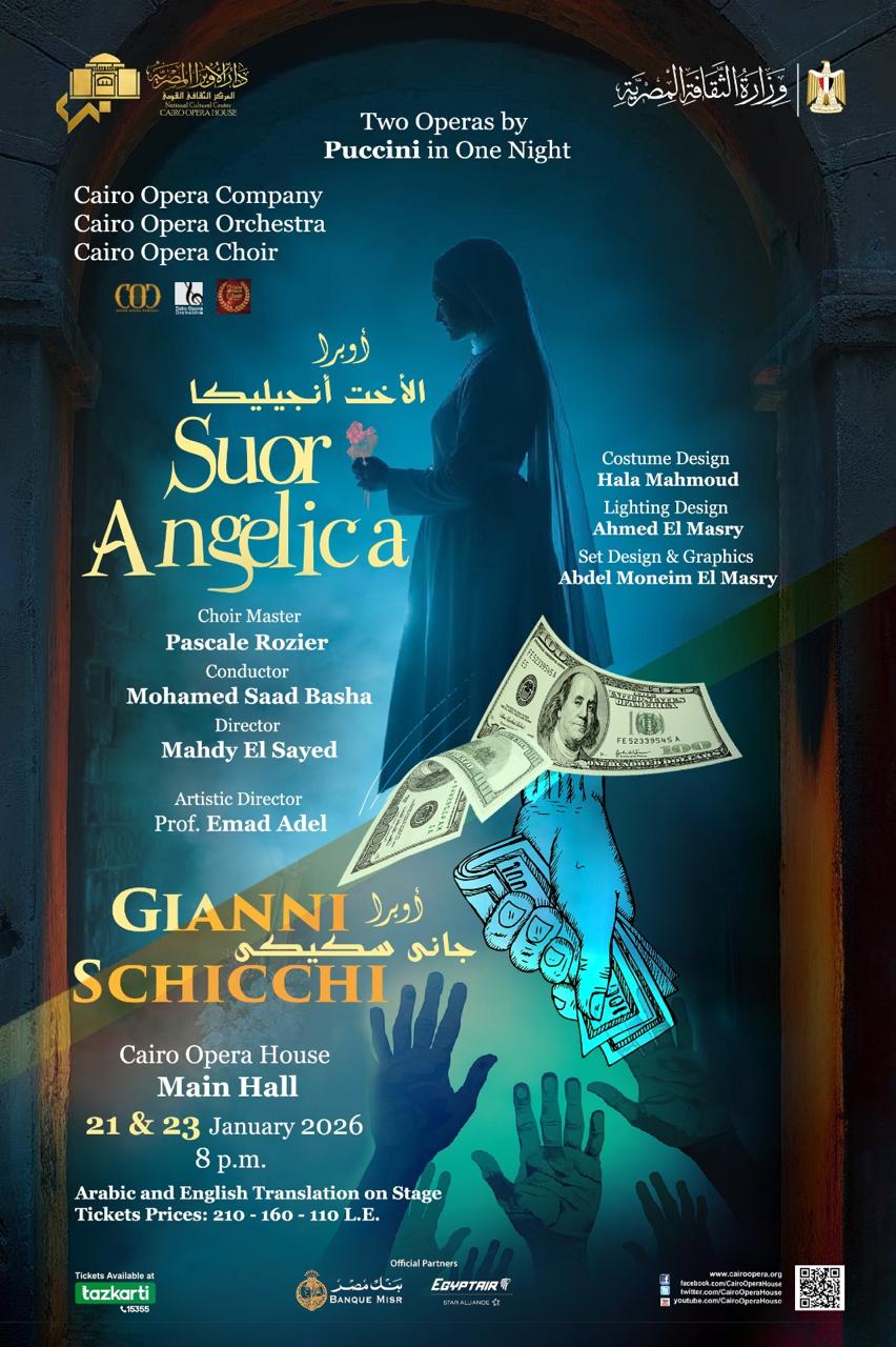 تواصل دار الأوبرا المصرية برئاسة الدكتور علاء عبد السلام مسيرتها في كشف كنوز الإبداع العالمي، من خلال عرض أوبرتين من ثلاثية "آل تريتيكو" للمؤلف الموسيقي العالمي جياكومو بوتشينى، وهما "الأخت أنجيليكا" و**"جانى سكيكى"، على المسرح الكبير بدار الأوبرا. ويقدّم هذه العروض فرقة أوبرا القاهرة بمصاحبة أوركسترا أوبرا القاهرة بقيادة المايسترو محمد سعد باشا، وكورال أوبرا القاهرة بإشراف باسكال روزيه، ومن إخراج مهدى السيد، وتحت إشراف الدكتور عماد عادل، وذلك في الثامنة مساء يومي الأربعاء والجمعة 21 و23 يناير.