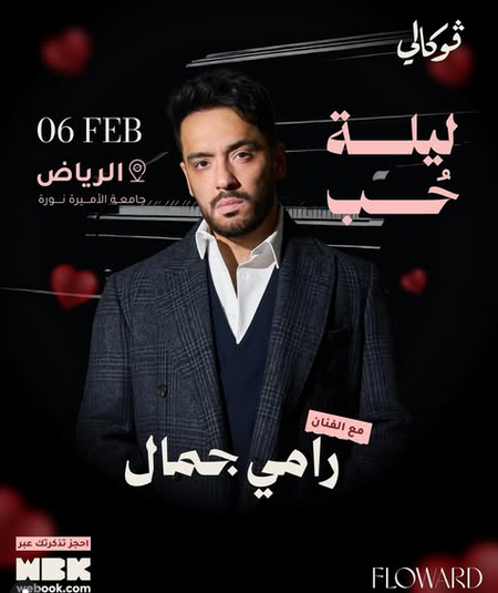 يستعد الفنان رامي جمال لإشعال أجواء مدينة الرياض بأحدث حفلاته الغنائية، المقرر إقامتها يوم 6 فبراير المقبل على مسرح جامعة الأميرة نورة، وسط حضور شبابي واسع.