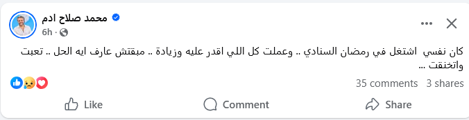 وقال صلاح آدم في تصريحاته: "كان نفسي أشتغل في رمضان السنة دي، وعملت كل اللي أقدر عليه وزيادة… مابقتش عارف إيه الحل… تعبت واتخنقت".