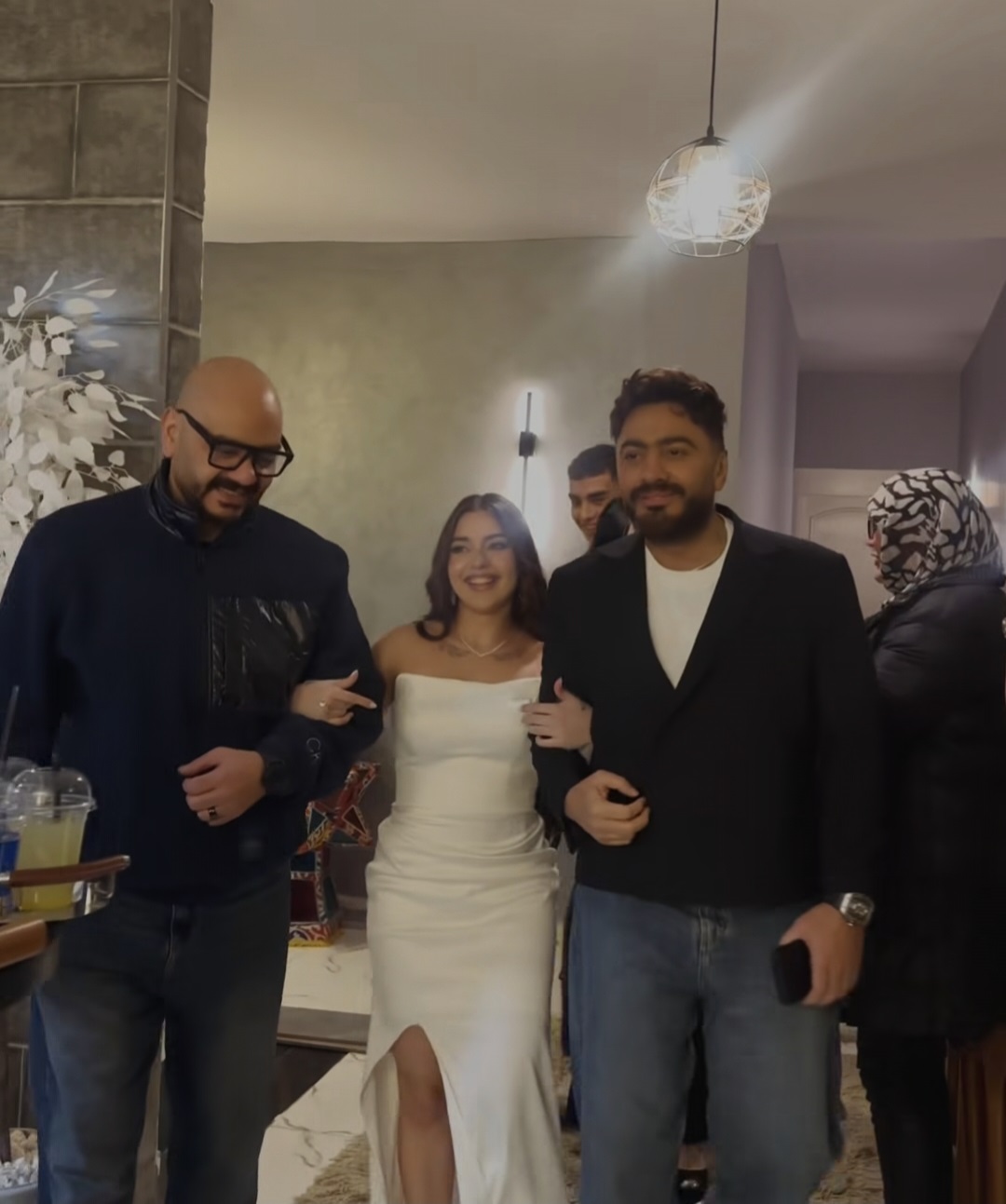 مكان والدها.. تامر حسني يقدم البلوجر هاجر الشرنوبي لـ خطيبها
