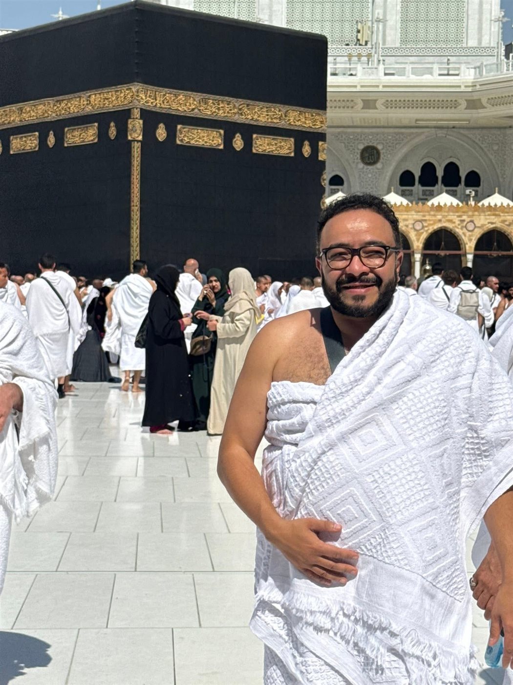 حسام داغر يؤدي العمرة عن والديه ويدعو لهما بالرحمة والمغفرة