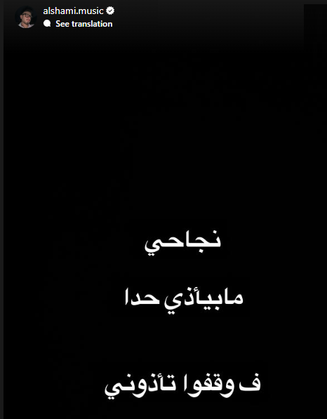 وكتب الشامي عبر حسابه على "إنستجرام": "صراع الأجيال سنة الحياة، كلنا هنمشي وهييجي جيل بعدنا زي ما احنا جينا بعد غيرنا.. نجاحي مش بيأذي حد، فبلاش تؤذوني".