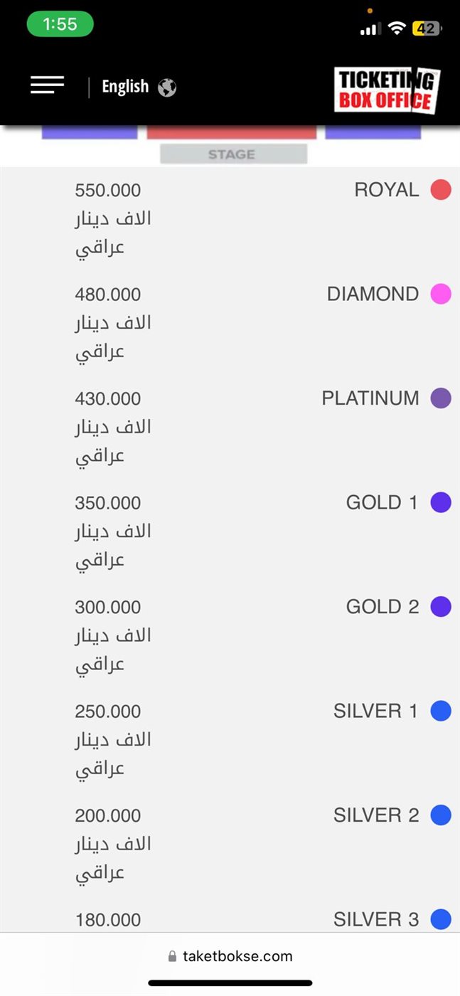 ونشرت شركة التذاكر بوستر رسمي للحفل عبر حسابها على موقع تبادل الصور والفيديوهات إنستجرام، مع توضيح أسعار التذاكر التي تتراوح بين 70 ألف و550 ألف دينار عراقي، إضافة إلى مجموعة من الشروط للالتزام بها، منها عدم استرجاع أو تبديل التذاكر، ومنع دخول من هم أقل من 12 عامًا، والتفتيش الأمني عند الدخول، مع الالتزام بلوائح السلامة العامة.