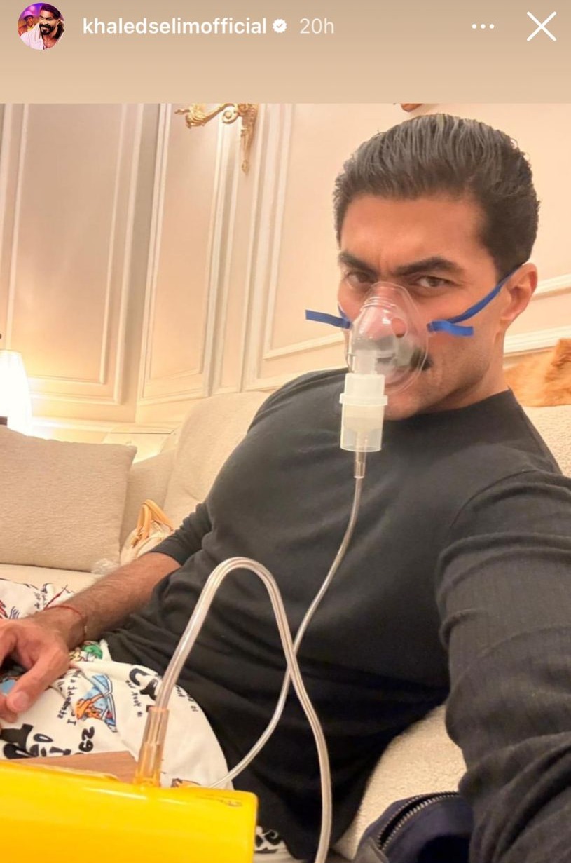 ونشر خالد سليم، صورة له وهو جالسًا على سريرة، ومرتدي ماسك الأكسجين، ولم يعلق ما آثار قلق جمهوره.
