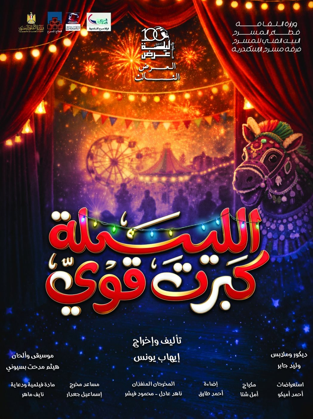 ومن المتوقع أن يقدّم «الليلة كبرت قوي» تجربة مسرحية ثرية تجمع بين الأداء التمثيلي والاستعراضات والموسيقى، في ليلة افتتاحية تُضاف إلى رصيد الحراك المسرحي النشط الذي تشهده مدينة الإسكندرية خلال الموسم الرمضاني، وتعكس استمرار زخم العروض الثقافية والفنية على خشبات مسارحها.