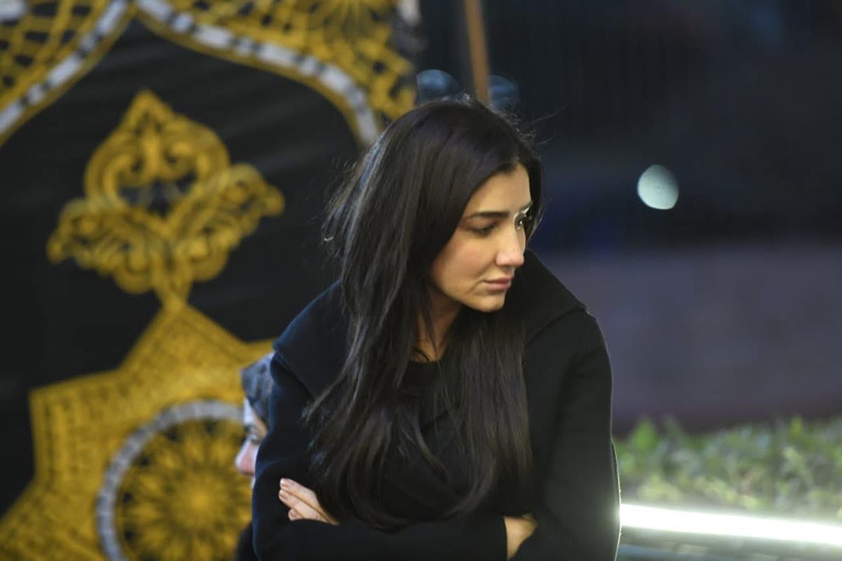 واستقبل زوجها المخرج محمد سامي العزاء في حماه، حيث ظهر في حالة حزن شديدة محاولا التماسك ومساندة زوجته التي ظهرت في حالة انهيار.