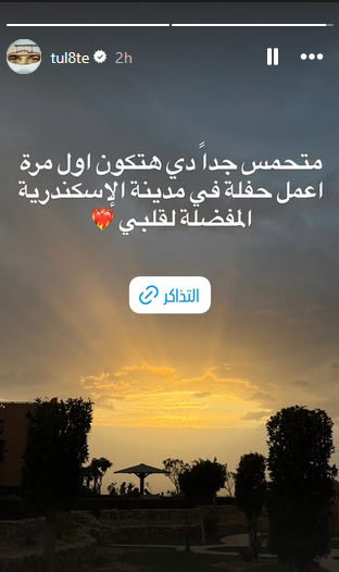 وفي خطوة حماسية، أعلن تووليت عن الحفل عبر حسابه على موقع الصور والفيديوهات إنستجرام، معبرًا عن شوقه للقائه مع جمهوره بالإسكندرية، خاصة وأنها ستكون أولى حفلاته في المدينة.